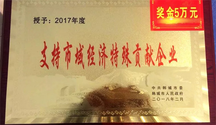 新春才過,捷報飛傳!2月23日,韓城市召開全市營商環境建設年動員暨2017年度總結表彰大會,表彰獎勵2017年度經濟工作功勛企業先進單位和個人,浙江人文園林股份有限公司榮獲韓城市2017年度支持市域經濟特殊貢獻獎。