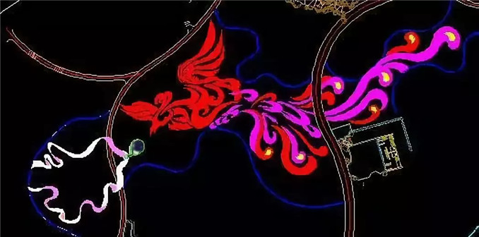 人文園林大地作畫靈感一般來源于傳統文化藝術,結合場地文化和項目特征,以吉祥圖案和傳統文化元素為主,以特有的營造手法,傳承創新中國園林藝術。在圖案的設計中,人文園林拋棄常見的對稱幾何圖案,用中國文化中特有的藝術線條來展示。但有一點,無論是否采用幾何圖案,大地藝術都必須用平整鮮明的輪廓線條來體現其精致的美感。