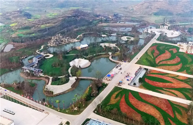 人文園林獨創性的中國特色大地藝術是模紋花壇的大地藝術化,擺脫花壇的束縛,是更大尺度上的大地作畫。同時,大地藝術與模紋花壇最大的不同是,大地藝術不再是園林項目中節點位置的點綴藝術,而是成為主景和畫卷。人文園林因地制宜,以中國文化藝術為底蘊,運用陳勝洪先生多年積累總結的特色植物配置風格,以及獨特的地形營造手法,在大地上作畫,獨創性地進行大地藝術營造實踐,形成獨一無二的“大地立體畫卷”。
