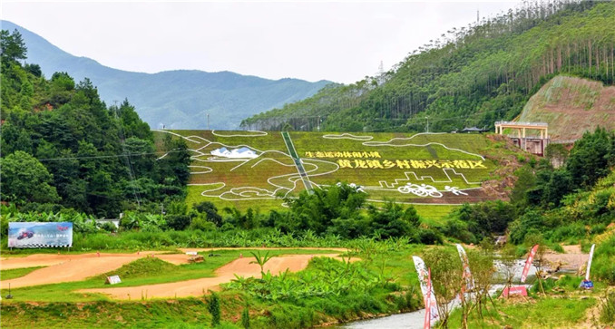 丫山大壩立體綠化的圖案與環境融合,將周邊山體延伸至大壩上;并融入丫山、運動、休閑小鎮、生態、健康等地域特色,將一幅生態運動休閑小鎮的畫面躍然壩上。針對項目特點,選用佛甲草、金葉過路黃、玉龍草等喜陽耐旱矮生植物,確保景觀效果,降低養護成本。