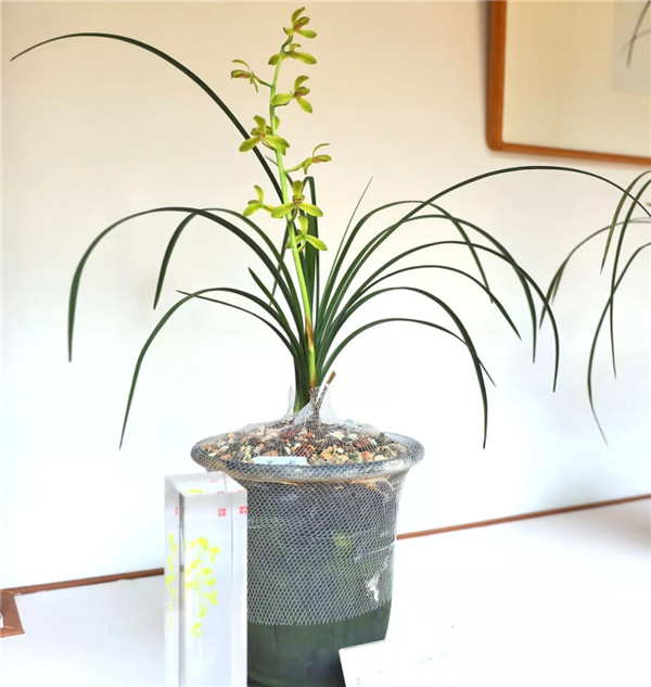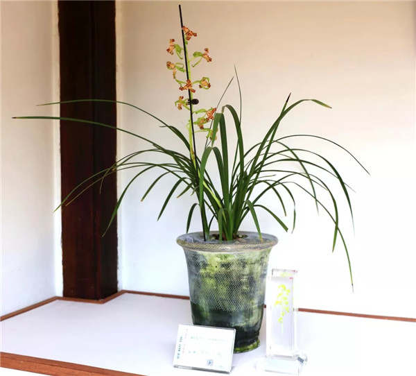 人文園林共有6盆蕙蘭參展,分別為“春江梅”、“盧氏蕊蝶”、“翠豐” 、“和諧梅”、“彩云澗”和“云中鶴”,皆為人文園林董事長陳勝洪多年來采集、收藏的精品。因為對蘭花的熱愛與癡迷,30多年來,他傾力采集、培育了大量蘭花品種,“春江梅”這個品種采自桐廬山中,花桿翠綠出架,花守特好,葉姿半垂,幽香雅韻,如空谷佳人,陪伴他已有20多年。